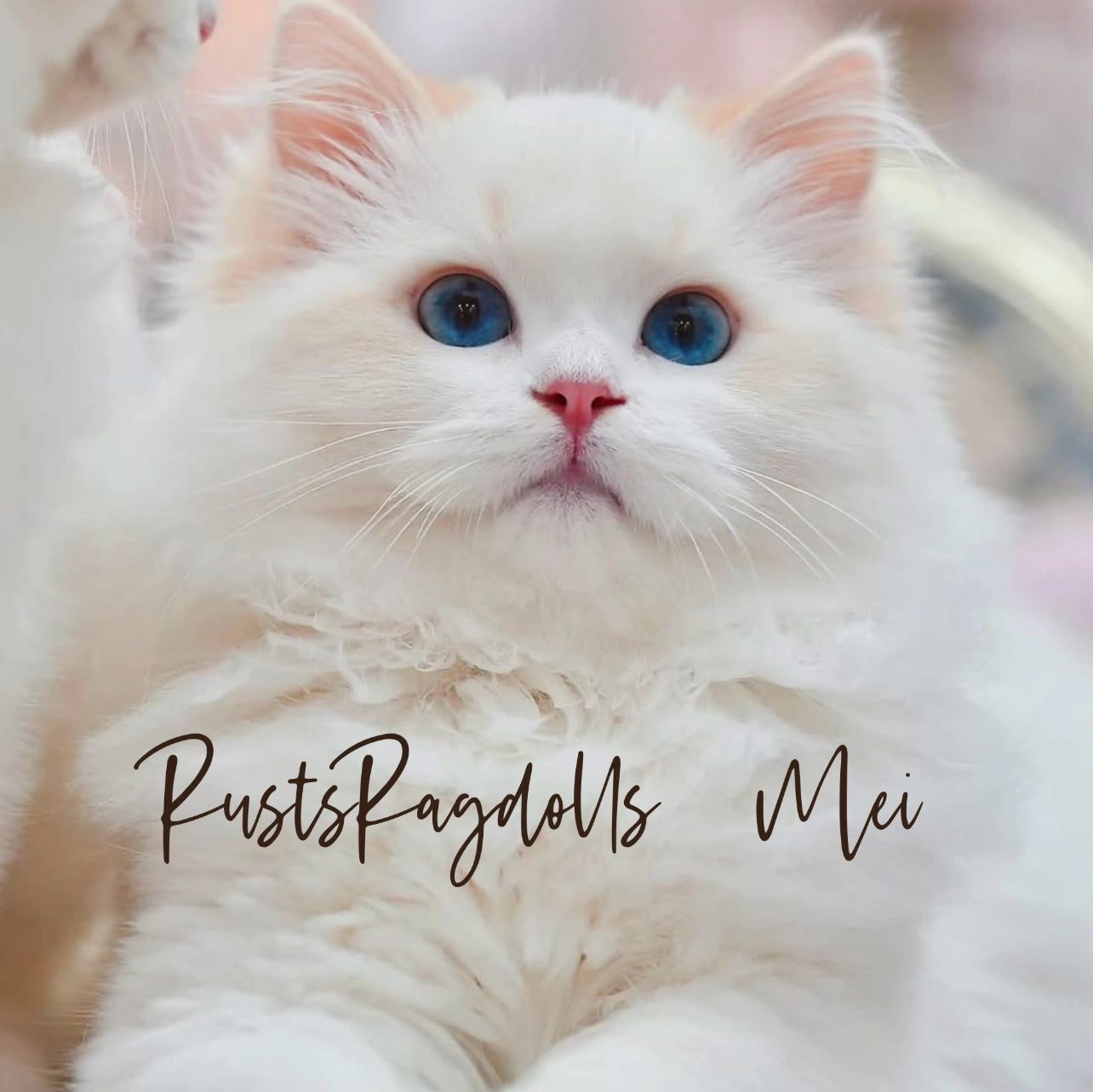 Mei comes to us all the way from China. We are honored to have her with us! She is one of our most elegant beautiful blue eyed Ragdoll Cats.